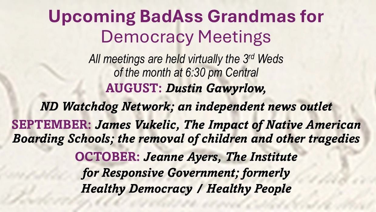 BadAss Grandmas is a non-partisan movement of people who remember better government before moneyed special interests overwhelmed the voices of citizens. Future generations deserve a government that works for all, not just the wealthy and powerful. How can you help? VOTE? Get involved with your community or just join us to LEARN.