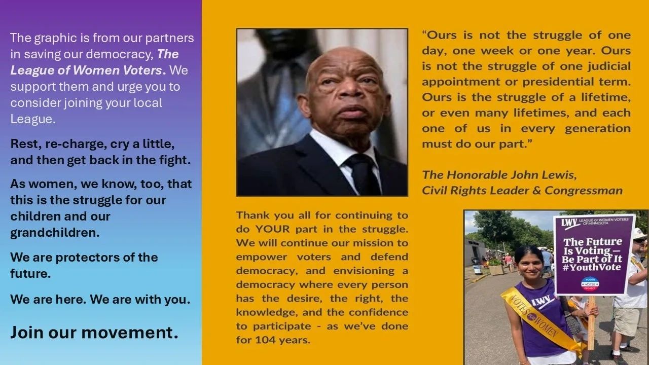 Your support and involvement at our meetings will help power our movement to save our Democracy for our grandchildren. We also hope you will support our movement and buy our merchandise, which supports our work (link below). Thank you.